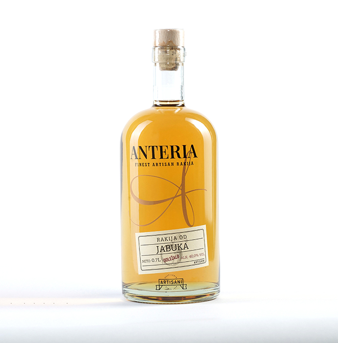 Anteria Exclusive rakija od jabuka napravljena je preradom i destilovanjem sorti Zlatni Delišes, Granny Smith i Jonathan u specifičnom odnosu, zbog cega ima prepoznatljiv miris i ukus. Odležavanjem u hrastovim buradima domaće proizvodnje dobila je prefinjenu boju.