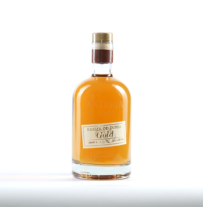 Gold rakije su najkvalitetniji proizvodi brenda Anteria. Kao rezultat višegodišnjeg rada i posvećenosti, stvorena je jedinstvena formula, koja je donela najupečatljivije alkoholno piće sa nestvarnim vocnim ukusom i mirisom, i ove rakije stavila na sam vrh proizvoda svoje kategorije. Gold rakije vrhunskog kvaliteta proizvodimo u ograničenim količinama od šljiva i od dunja, a tržištu ih prezentujemo u unikatnoj ambalaži sa serijski označenom bocom, u posebnom, ručno rađenom, drvenom pakovanju. Tek nakon što probate, uvidećete da je opis ovih rakija rečima nemoguć, ali je zato svaki gutljaj nezaboravan.