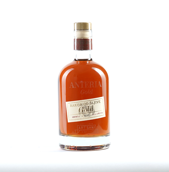 Gold rakije su najkvalitetniji proizvodi brenda Anteria. Kao rezultat višegodišnjeg rada i posvećenosti, stvorena je jedinstvena formula, koja je donela najupečatljivije alkoholno piće sa nestvarnim vocnim ukusom i mirisom, i ove rakije stavila na sam vrh proizvoda svoje kategorije. Gold rakije vrhunskog kvaliteta proizvodimo u ograničenim količinama od šljiva i od dunja, a tržištu ih prezentujemo u unikatnoj ambalaži sa serijski označenom bocom, u posebnom, ručno rađenom, drvenom pakovanju. Tek nakon što probate, uvidećete da je opis ovih rakija rečima nemoguć, ali je zato svaki gutljaj nezaboravan.